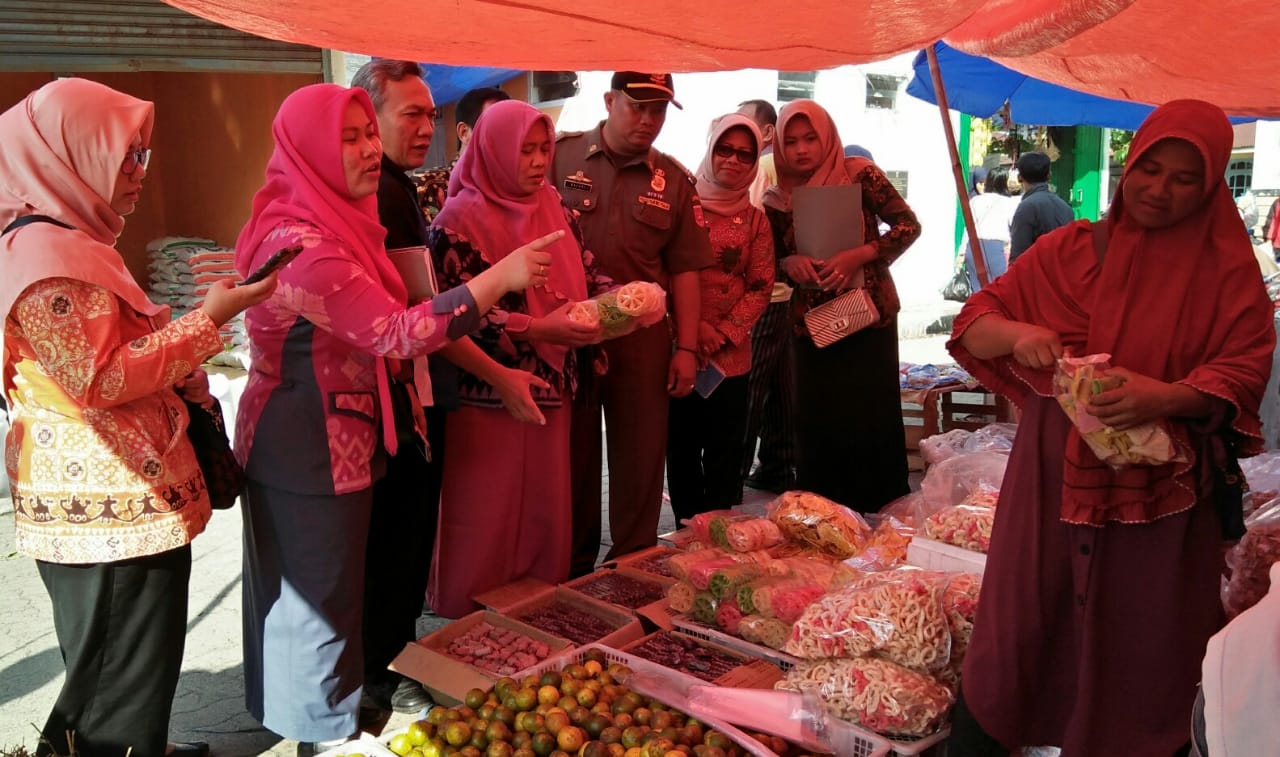 SIDAK PANGAN. Tim ketahanan Pangan Lampung Barat melakukan inspeksi mendadak di pasar Liwa untuk memastikan kelayakan pangan, harga maupun stok kebutuhan pokok, Jumat (8/6).LAMPUNG POST/ELIYAH