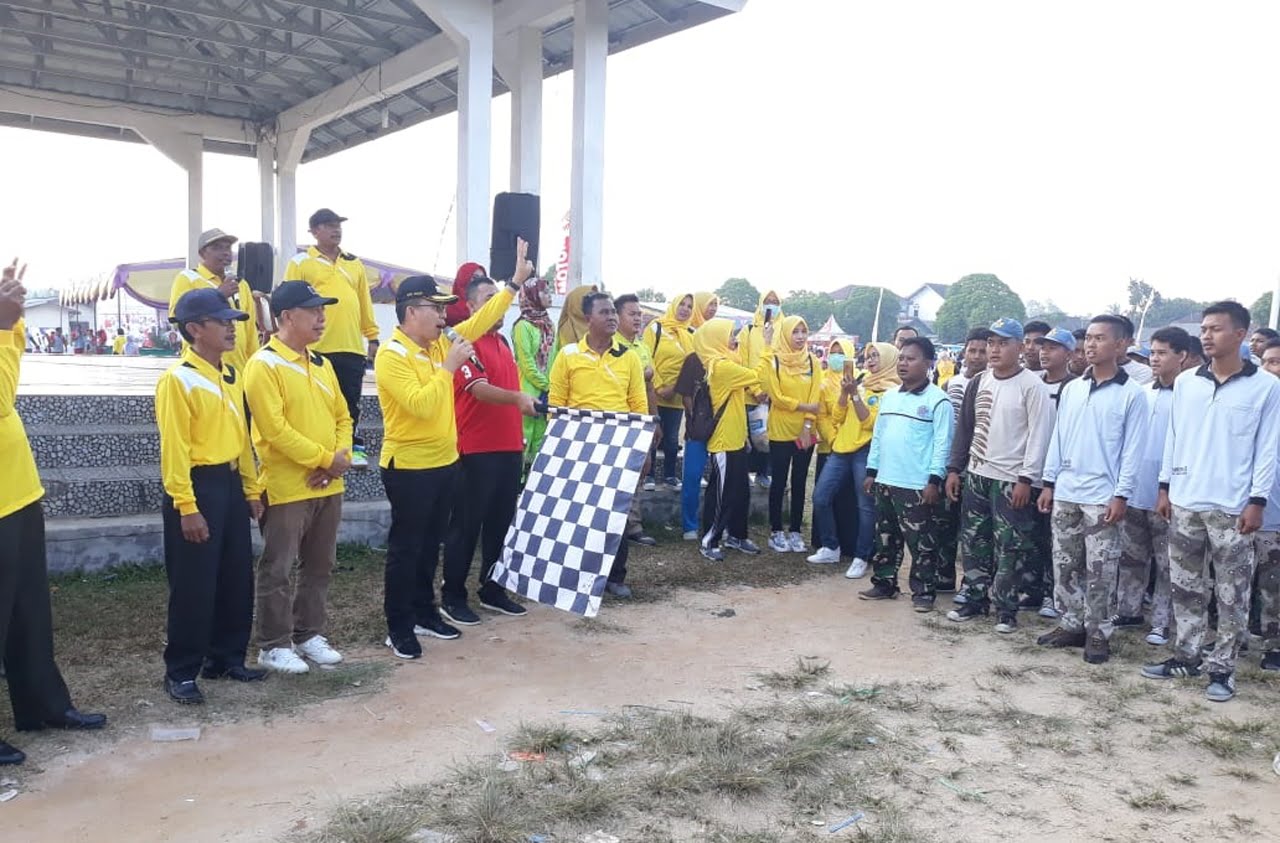 FESTIVAL MEMBACA. Bupati Lampung Timur Zaiful Bokhari melepas peserta jalan sehat dalam rangka Festival Membaca dan peringatan Hari Kunjung Perpustakaan serta Bulan Gemar Membaca di lapangan Desa Brajaharjosari, Kecamatan Brajaselebah, Senin (16/9). (DOKUMENTASI HUMAS PEMKAB LAMTIM)