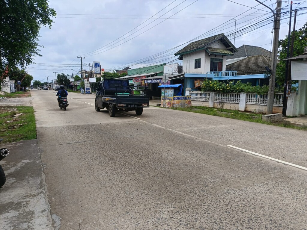 JALAN DR SOETOMO. Ruas Jalan Dr Soetomo di Kelurahan Hadimulyo Timur—Hadimulyo Barat, Kecamatan Metro Pusat. Audit BPK menemukan kerugian negara lebih dari Rp500 juta pada proyek peningkatan rekonstruksi rigid beton dan pelebaran tahun 2023 pada jalan tersebut. Foto: LAMPOST.CO/BAMBANG PAMUNGKAS