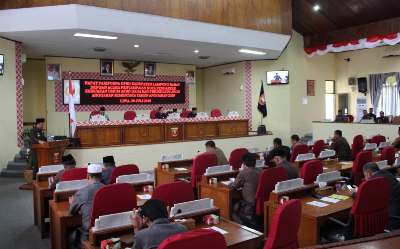 KUA-PPAS. Paripurna penyampaian nota pengantar rancangan KUA PPAS tahun 2020 Pemerintah Kabupaten Lampung Barat, Senin (29/7). (DOKUMENTASI HUMAS PAMKAB LAMBAR)