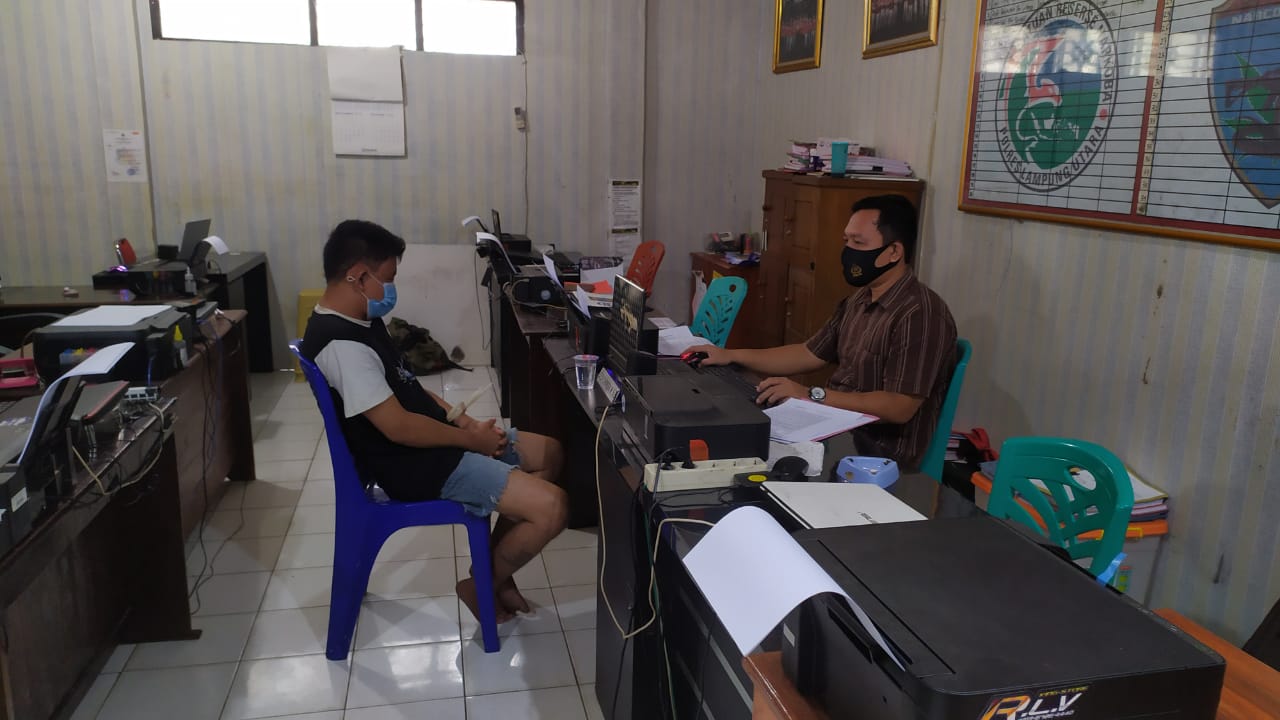 JALANI PEMERIKSAAN. Tersangka pengedar sabu-sabu menjalani pemeriksaan di ruang Satresnarkoba Polres Lampung Utara, Kamis (22/10). LAMPUNG POST/HARI SUPRIYONO