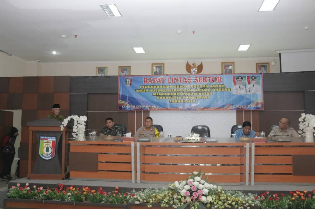 ANTISIPASI BENCANA. Rapat lintas sektoral mengantisipasi bencana banjir di aula Pemkab Pringsewu, Kamis (26/12). DOK PEMKAB PRINGSEWU