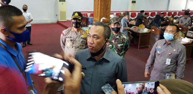 Bupati Tubaba Umar Ahmad menyampaikan hasil pembahasan KUA-PPAS APBD-P 2020 kepada wartawan (merwan)