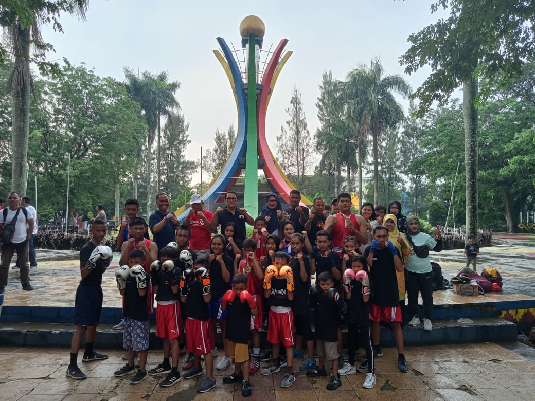 BERLATIH. Para petinju Metro usai berlatih bersama di Taman Merdeka, Metro, Senin (6/6). Pemkot berjanji akan memberikan sasana baru untuk berlatih sebagai hadiah atas prestasi yang sudah membanggakan Metro. LAMPUNG POST/BAMBANG PAMUNGKAS