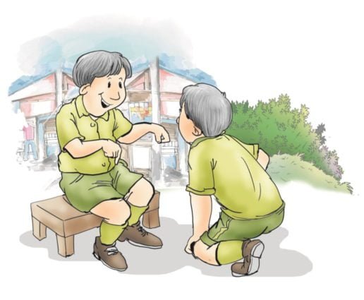 Bagas menatap kami satu per satu. Wajahnya pun tak ceria. (Ilustrasi: Sugeng Riyadi)