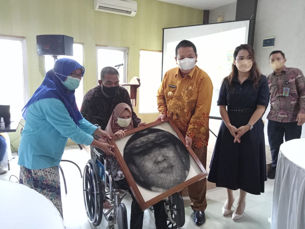 Anak Disabilitas di Kota Metro memiliki kemampuan melukis, dan karyanya diserahkan ke Gubernur Lampung Arinal Djunaidi. (LAMPUNG POST/BAMBANG PAMUNGKAS)