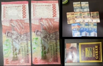 Uang palsu pecahan Rp100.000 yang digunakan untuk membeli rokok. Dok/Polres Metro