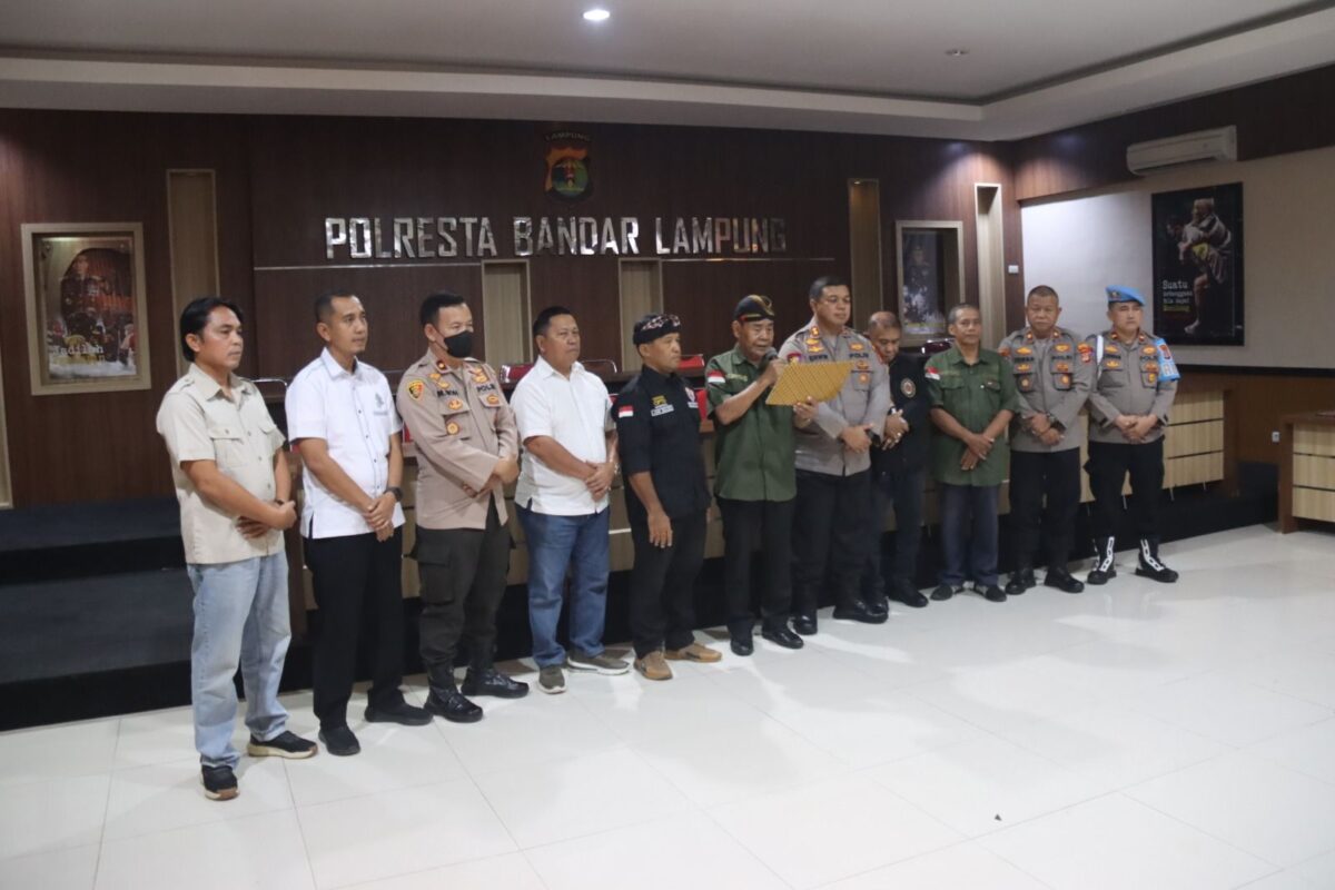Bandar Lampung (Lampost.co) – Polresta Bandar Lampung mempertemukan para tokoh dari kedua kelompok suku terkait video yang viral karena ujaran kebencian penghinaan suku. Pertemuan antara dua tokoh suku, terlaksanakan pada Senin, 13 Oktober 2025 di Mapolresta Bandar Lampung, dan dipimpin oleh Wakapolres Bandar Lampung, AKBP Erwin Irawan.