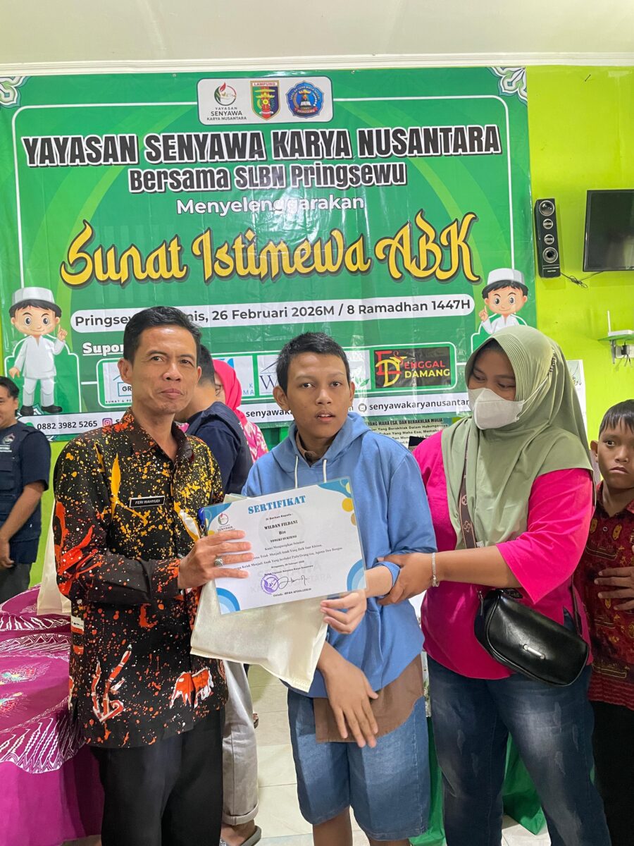 - SLB Negeri Pringsewu dan Yayasan Senyawa Karya Nusantara menggelar khitanan massal “Sunat Istimewa ABK”.