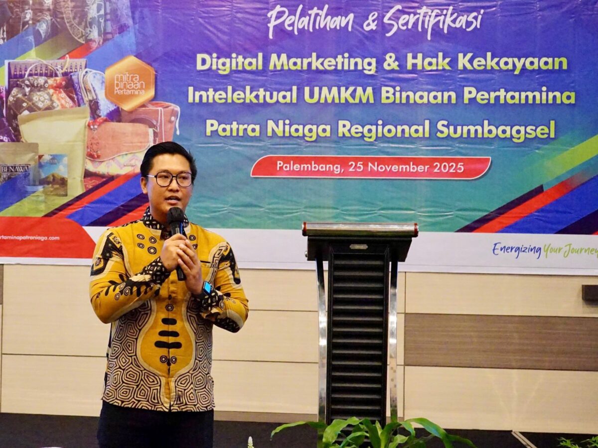 Palembang (Lampost.co): Pertamina Patra Niaga Regional Sumatera Bagian Selatan (Sumbagsel) terus memperkuat kapasitas pelaku Usaha Mikro, Kecil, dan Menengah (UMKM) di era digital dengan menggelar Pelatihan dan Sertifikasi “Digital Marketing dan Hak Kekayaan Intelektual UMKM Binaan Pertamina Patra Niaga Regional Sumbagsel” secara hybrid di Harper Hotel Palembang pada Selasa (25/11/2025). Kegiatan ini digelar untuk menjawab tantangan yang masih dihadapi UMKM, terutama keterampilan digital, pemahaman branding, dan perlindungan merek.