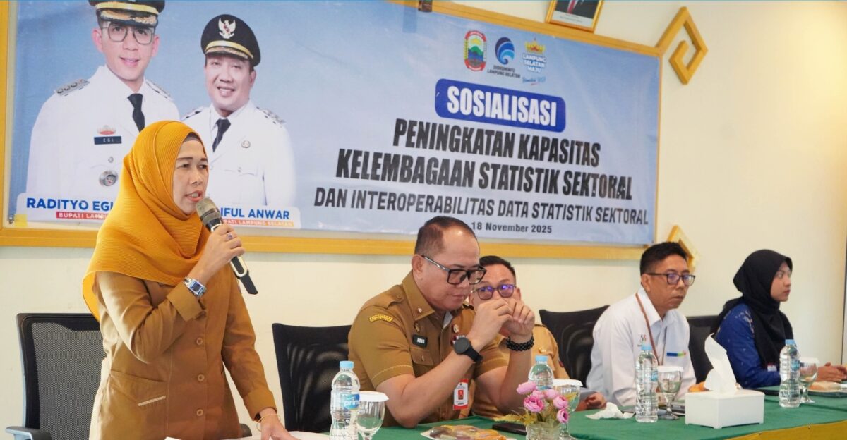 Kalianda (Lampost.co): Pemerintah Kabupaten (Pemkab) Lampung Selatan melalui Dinas Komunikasi dan Informatika (Kominfo) menggelar Sosialisasi Peningkatan Kapasitas Kelembagaan Statistik Sektoral dan Interoperabilitas Data Statistik Sektoral pada Selasa (18/11/2025) di Negeri Baru Resort, Kalianda.