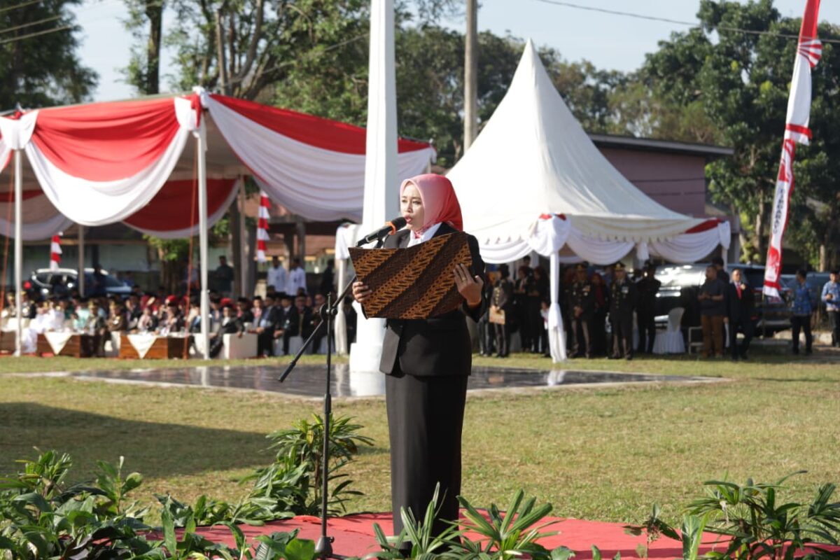 SUKADANA (lampost.co) — Upacara peringatan Hari Ulang Tahun (HUT) ke-80 Republik Indonesia berlangsung khidmat di Lapangan Pemkab Lampung Timur, Minggu (17/8/2025). Ketua DPRD Lampung Timur, Ridarotul Aliyah, mendapat kehormatan membacakan teks Proklamasi Kemerdekaan.