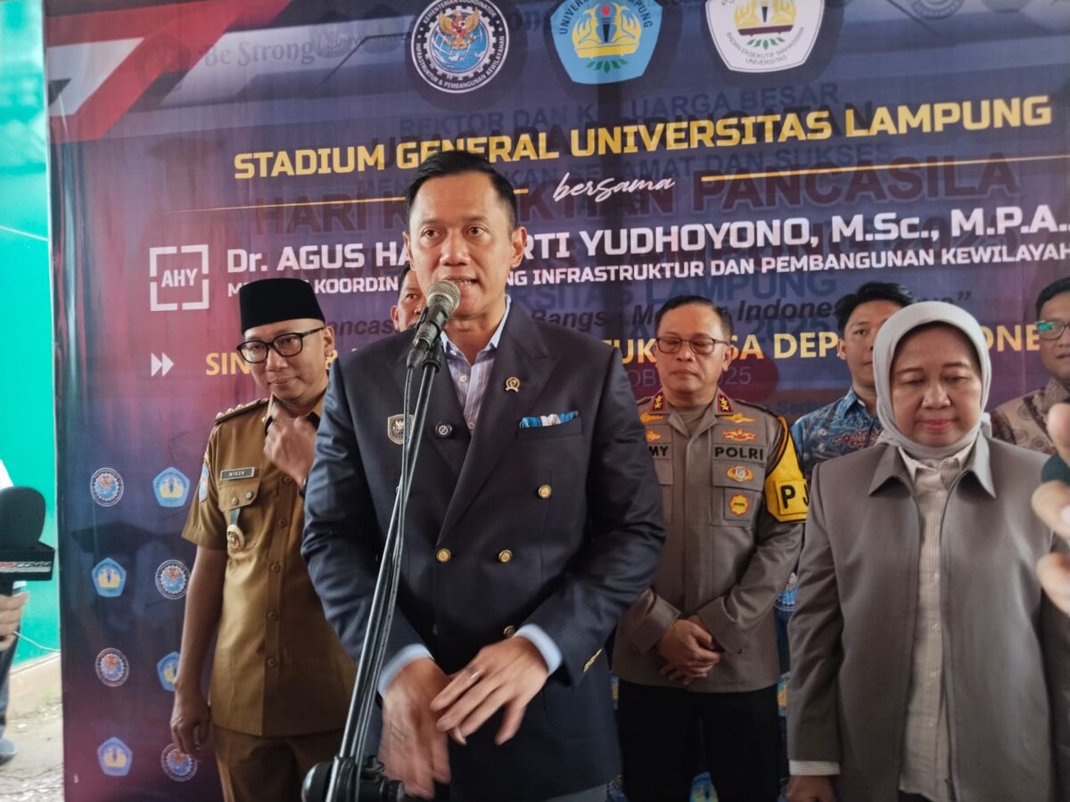 AHY memastikan pemerintah pusat akan terus memperkuat kerja sama dengan pemerintah daerah, termasuk Lampung, dalam memperluas konektivitas dan pemerataan pembangunan.