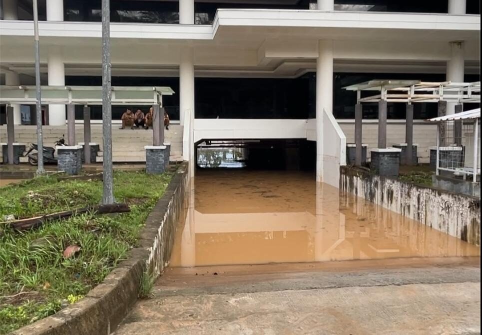 Salah satu pegawai Pemda yang enggan disebutkan namanya menyampaikan, sejumlah kendaraan masih terjebak di parkiran bawah. “Ada motor yang terseret air, ada juga mobil yang terjebak banjir,” ungkapnya.