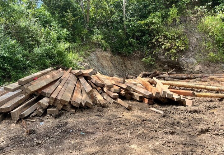 Barang bukti balok kayu dugaan praktik penebangan liar atau illegal logging di Sabardong, Pugung Penengahan, Kecamatan Lemong, Kabupaten Pesisir Barat, Lampung. Dok
