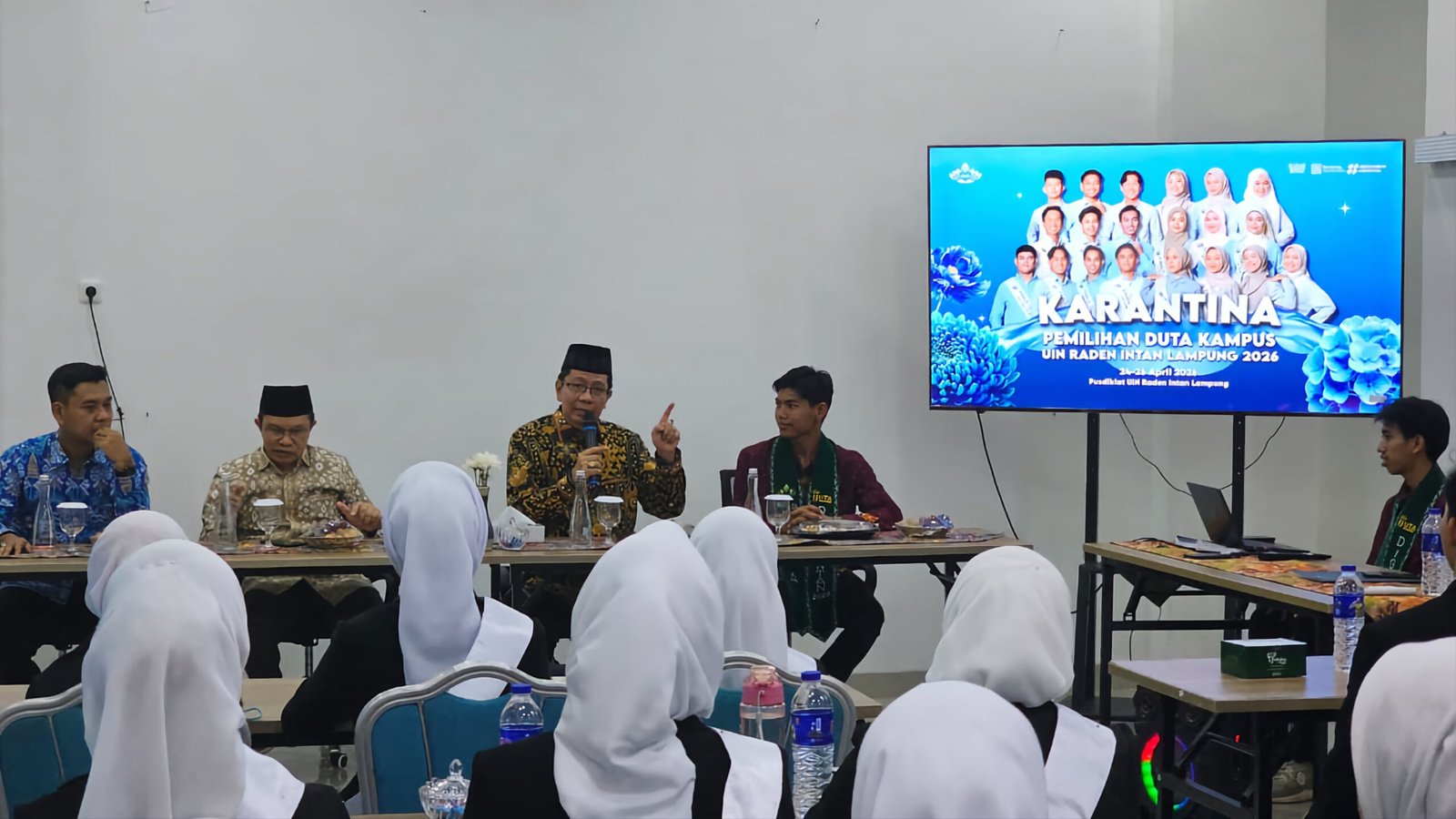 Tahapan karantina menjadi bagian penting dalam proses pemilihan duta kampus. Para finalis mendapatkan pembekalan sebelum memasuki grand final penobatan sebagai Duta Raden Intan 2026. Di hadapan para peserta, Rektor menegaskan bahwa setiap pencapaian selalu melalui proses panjang dan tahapan yang harus dijalani.
