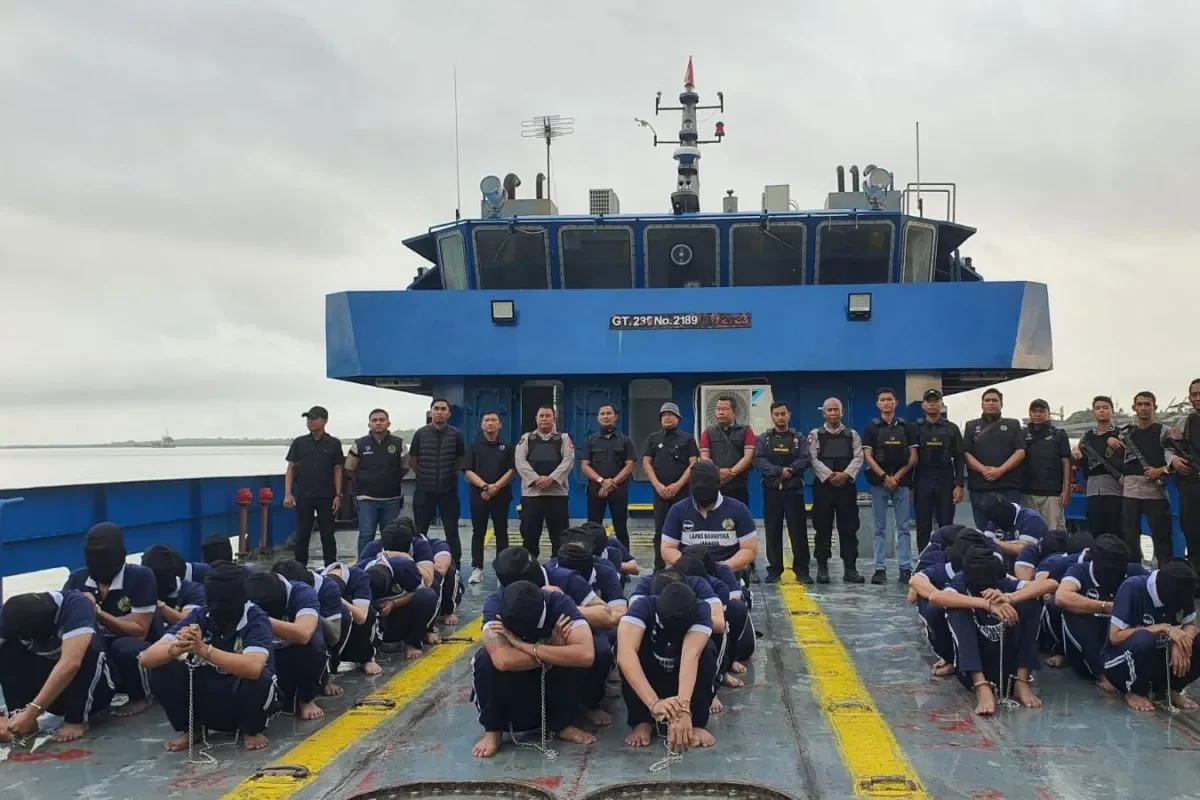 Puluhan narapidana asal Jakarta dipindah ke sejumlah lapas di Nusakambangan Cilacap, Senin (13/10/2025) (ANT)