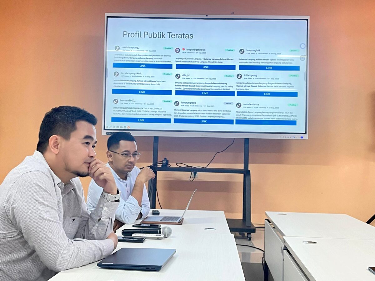 Temuan ini berdasarkan hasil analisis sentimen oleh Gedong Meneng Institut di FISIP Universitas Lampung, Selasa, 2 September 2025. Melalui riset Dr. Feri Firdaus, dan Eka Yuda Gunawibawa, M.Med.Kom., terhadap percakapan publik pada media sosial dan pemberitaan media daring.